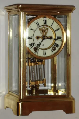 Ansonia Clock Co., New York, "Prism" 8 day time and strike spring driven crystal regulator mantel clock, c1914