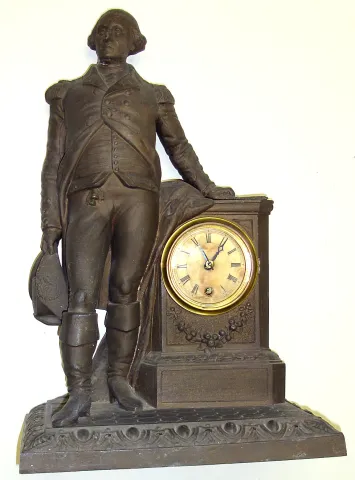 Nicholas Muller large George Washington cast metal 8 day mantel clock, c1865.