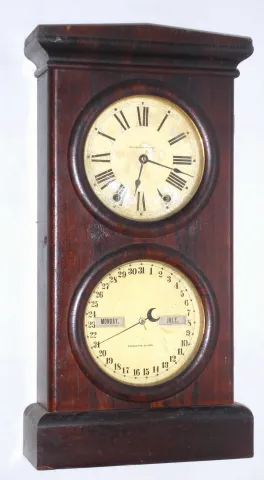 Seth Thomas Clock Co., Thomaston, Conn., "No. 3 8 Day Parlor Calendar" time and strike spring driven mahogany shelf clock, dated 1887