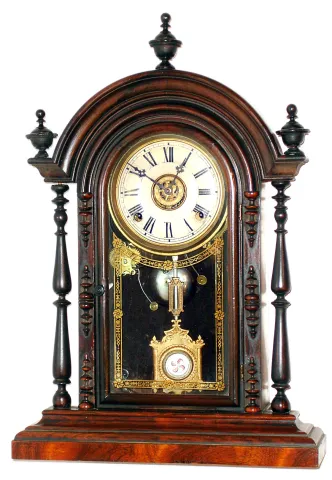 Welch, Spring and Co., Forestville, Conn. Parepa V.P. rosewood 8 day time and strike mantel clock, c1880