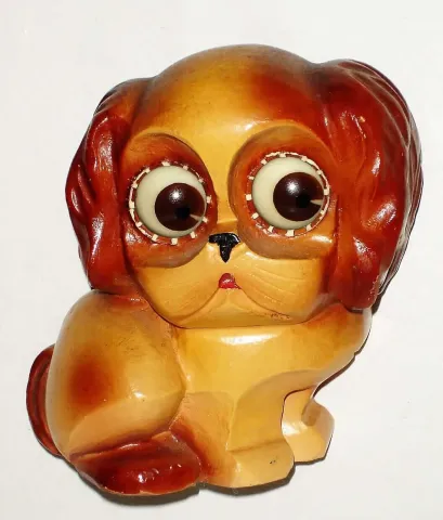 German, Oswald, small dog light color rotating eyes 30 hour novelty clock, circa mid 20th century