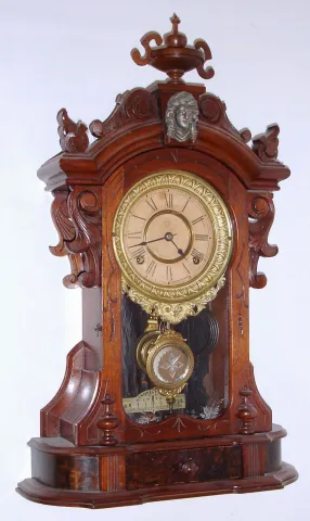 Ansonia Clock Co., "Monarch", 8 day time/strike walnut mantel clock. c.1880