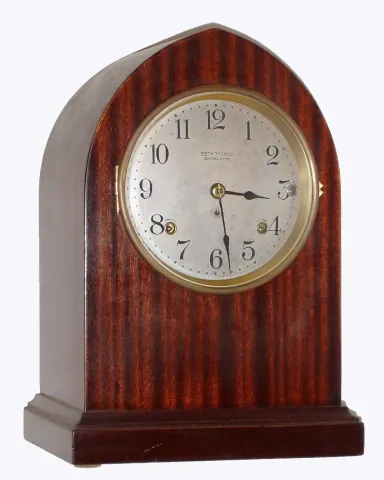 Seth Thomas Clock Co., Thomaston, Conn., "Sonora Chime" 5 bell 8 day mahogany mantel clock, c1911