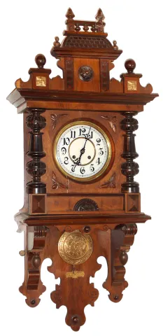 Jasser, Liegnitz/Silesia, German free swinger walnut time and strike 8 day wall clock, c1880