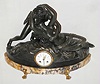 Large French 8 day bronze figures mantel clock, marble base, c1880.