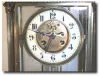 Tiffany Crystal Regulator, Made in France, c. 1890 Case: Cast brass with great detail and beveled glass with porcelain dial and open escapement with jewelled pallets. Corinthian columns and detailed cast leaves both top and bottom. Dial shows remains of Tiffany trademank. 13.25" tall. Works: S. Marti et Cie "MEDAILLE DE ARGENT 1889" made in France Reference: French Marble Clocks by Thorpe Condition: Case: Great detail in casting, very good condition, some of the original finish is polished away. Works: excellent, cleaned and running..