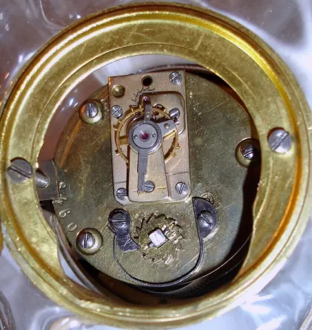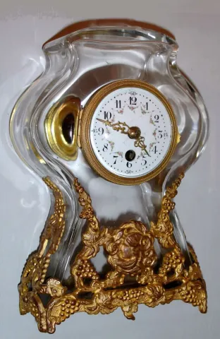the gilt mounts have wear to their gold finish, brown on high spots. Original porcelain dial is perfect and the hands are original. The original lever...