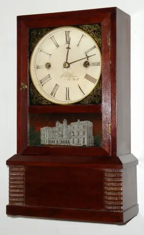 J. C. Brown, Forestville Mfg. Co., 30-hour time/strike cottage style shelf clock with ripple molding. c.1850
