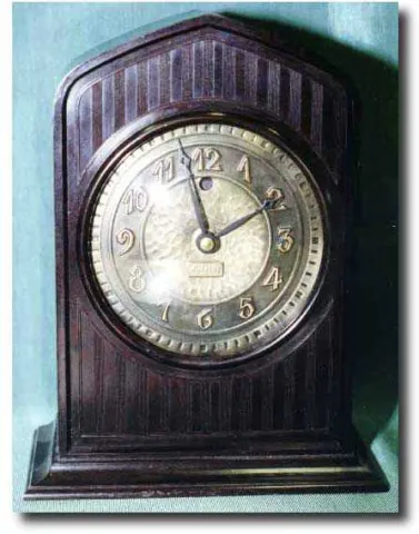 "Victor" Bakelite electric clock case made about 1930. When we bought this nice case it had no movement, so we installed a new quartz battery movement...