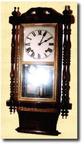 Mahogany case with attractive inlay details. Eight day movement striking on a bell. Circa1890. Condition good, movement has been restored and is in fu...
