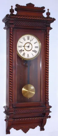 oak case model in very fine condition in original finish. Original finials, hands and pendulum. Dial paper has been replaced. Overall a very nice exam...