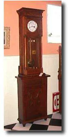 A grande sonnerie standing Vienna regulator in a carved walnut art nouveau period case. The beautiful 8 " enamel dial is signed by Cuendet Constant , Budapest (probably a seller). This clock has a well made 3 weight brass movement which has an adjustable dead beat escapement. Standing Vienna regulators are uncommon and this is a lovely one that is in good running order. The dimensions of this clock are 80 " x 24 " x 10 ". Running duration 8 Days