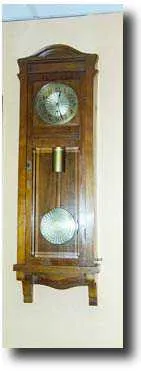 This 30 Day Vienna Regulator has a well made , walnut case that is reminiscent of the Art Nouveau style with a beveled glass door. The brass dial has Arabic numerals and with an engine turned center that matches engine turning on the pendulum. The very well made trapezoid movement has an adjustable dead beat escapement and maintaining power. 30 Day Vienna regulators are exceedingly rare and highly sought after by the collector. The dimensions of this clock are 42 " x 14 " x 6 ". Running duration 30 Days