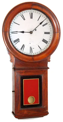 E. Howard and Co., Boston, Mass., "Regulator No. 70" wall clock 8 day time only weight driven movement in walnut case with reverse painted tablet and painted metal dial, c1900