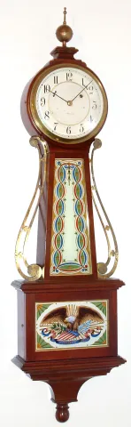 Waltham Clock Co., Waltham, Mass., banjo timepiece 8 day time only weight driven movement in mahogany case retailed by Tiffany and Co. This must have been a special order presentation timepiece made by Waltham, serial No. 6604 c1922