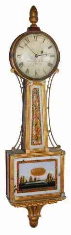 Benjamin Morrill, Boscawen, NH, presentation banjo, gilt rope front, weight driven, 8-day, c1840