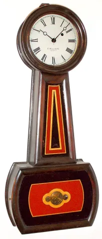 E. Howard and Co., Boston, Mass., "No. 5 Banjo" timepiece 8 day weight driven movement in rosewood grained, c1900