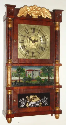Birge, Mallory and Co., 30-hour time/strike miniature triple-decker shelf clock. c.1843