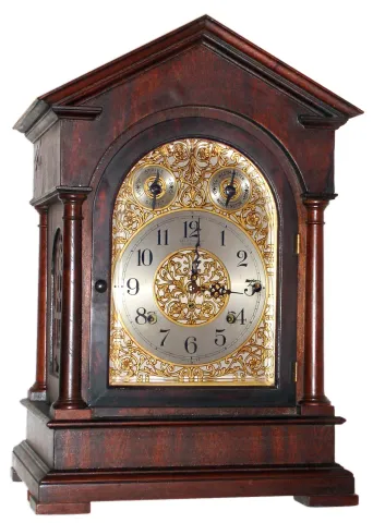 the clock is in excellent and original condition with minor veneer damage to left side return. Strikes on the quarter hour on choice of 4 or 8 bells. ...