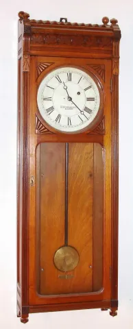 E. Howard and Co., Boston, Mass., "No. 58-8 Regulator" wall clock 8 day time only weight driven movement in walnut case with painted metal dial, c1900
