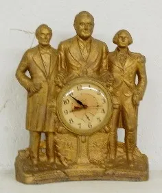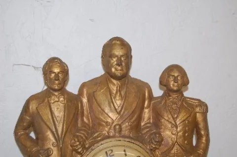 Metal Figural "Steersman" Clock: depicting Abraham Lincoln, FDR. and George Washington (Movement is loose in case.)...