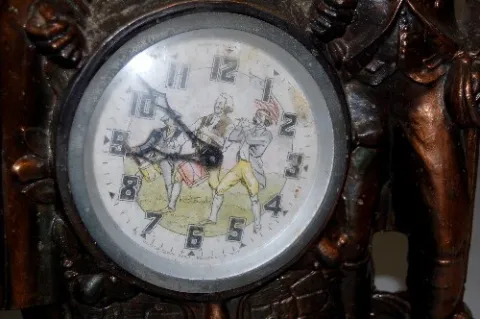 patriots clock; not running. 15" This lot is in rough, as is, as found condition....