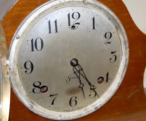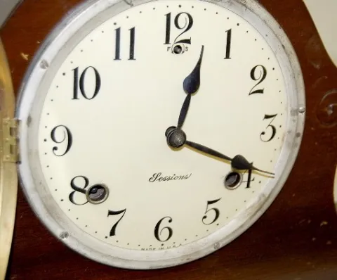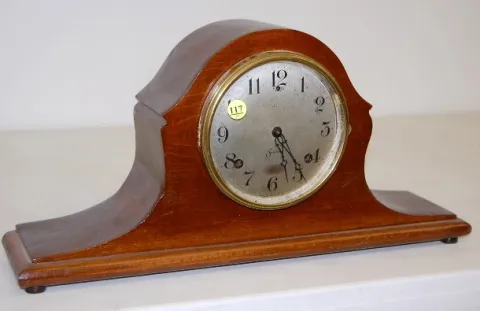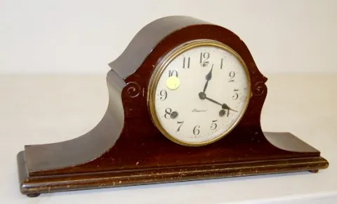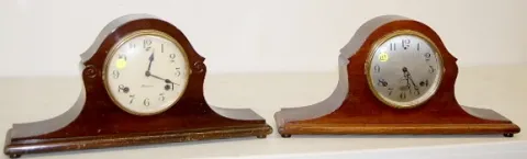 1.) Time and hour and half hour strike; marked painted tin dial; has pendulum; convex glass; label inside back door; runs for a short time. (Strike so...