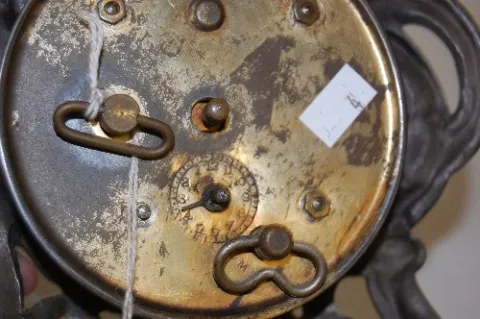 2 Antique Iron Clocks, Lady and Dolphin