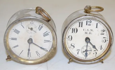 1.) Waterbury with paper dial and seconds bit, marked Ansonia and U.S.N. M.D., patented 1918. 2.) New Haven with marked paper dial, beveled glass. 3.)...