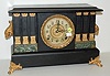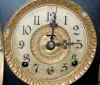 8 day; time and strike; cathedral gong with half hour bell strike; 4 1/2" marked painted tin dial; no key or pendulum; black enamel case with faux col...