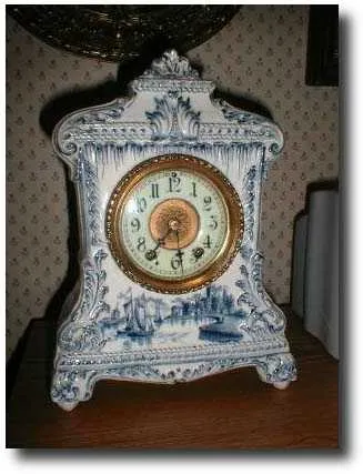 Waterbury Delft Style Porcelain Shelf Clock, circa 1905