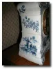Porcelain case, brass movement; porcelain dial, 12" tall by 9 1/2" wide; condition: excellent with home made rear cover-chips around rear opening-cove...