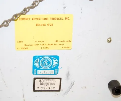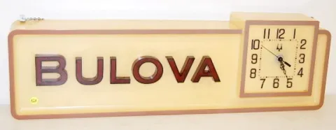 plastic frame; has quartz movement; lights and running. (Minor roughness.) 10 1/2" x 33"...