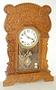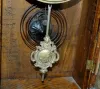 time and strike; 5" unmarked dial; has pendulum; no key; butterfly and floral glass door; hour and half hour gong; winds, runs and strikes. (Dial look...