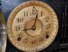 time and strike; hour and half hour cathedral gong strike; 5 1/2" metal embossed dial; marked movement. (Small loss to case on top.) 10" and running a...