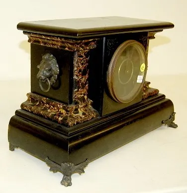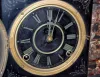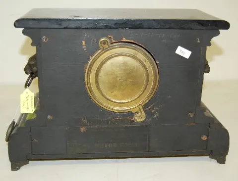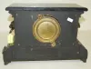 8 day; time and strike; cathedral gong with half hour bell strike; 4 1/2" black plastic dial; unmarked movement; no key; has pendulum; black enameled ...