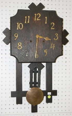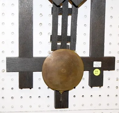 time and strike; metal numbers; has pendulum; paper label on back; not tested for running condition. 28 1/2"...