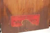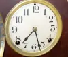 1.) Ingraham "Houston" tombstone; 5" marked paper dial on tin; has pendulum; partial label on back. (Running, but does not strike correctly; back need...
