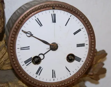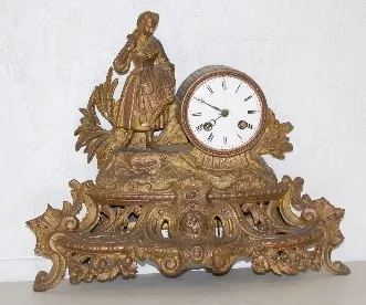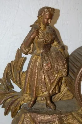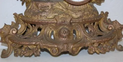 porcelain dial; T and S; bell strike movement; Paris. (Leg back needs fixed.) 12" This lot is in rough, as is, as found condition....