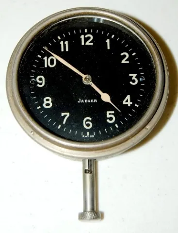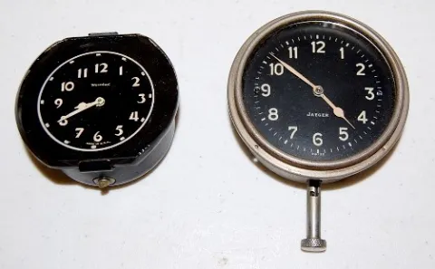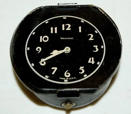 1.) Swiss stem wind; black dial; "Jaeger"; not working. 2.) Westclox; pull string wind; mirror frame; black dial....