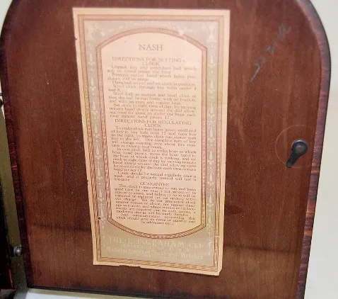 1.) New Haven time and strike; hour and 1/2 hour gong strike; marked silverized dial; marked movement; has pendulum, no key. (Dial is worn and stained...