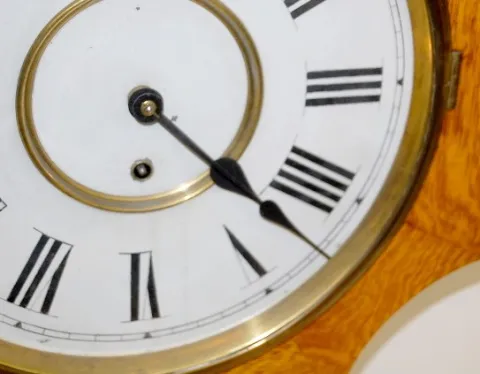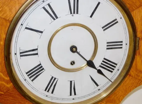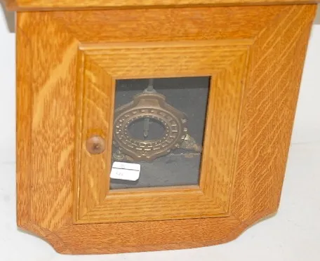 time only; tiger oak case; 11 1/2" dial; partial label. 26 1/2"...
