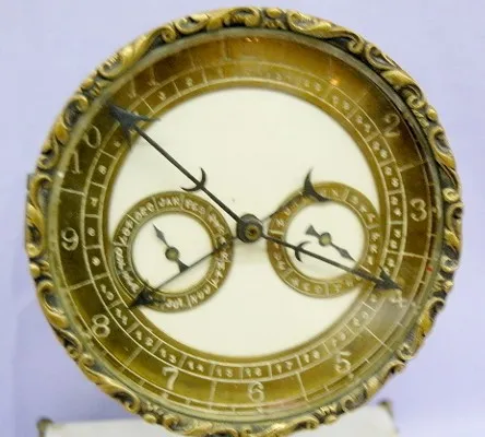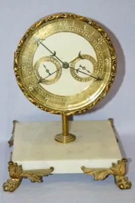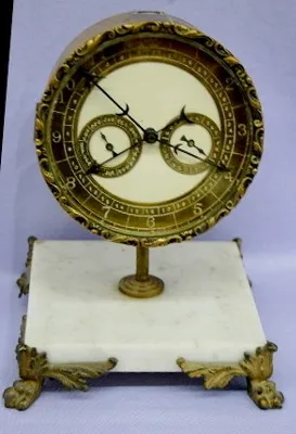 brass frame; iron feet; 4 3/4" dial. (Hole in the top; missing finial.) 9 1/2"...