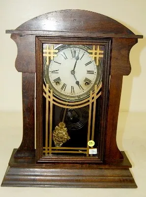 1.) Sessions Mahogany "Superior No. 3" Mantle Clock: 8 day; time and strike; 5" marked Made in U.S.A. painted tin dial; has key and pendulum; painted ...