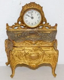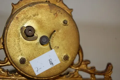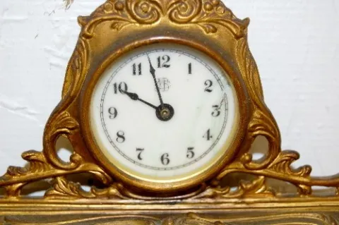 porcelain dial; signed; original liner; not running. (Dial is broken.) 6" x 5" This lot is in rough, as is, as found condition....