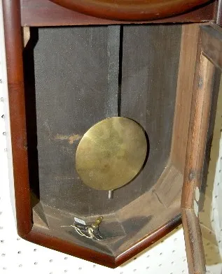 brass trim and pendulum; time only. (Damaged paper dial.) 30"...