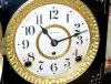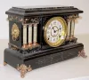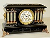 8 day time and strike; 4 1/2" marked paper dial; no key or pendulum; black enamel case with onyx columns; adamantine top and accents; cast metal lion ...