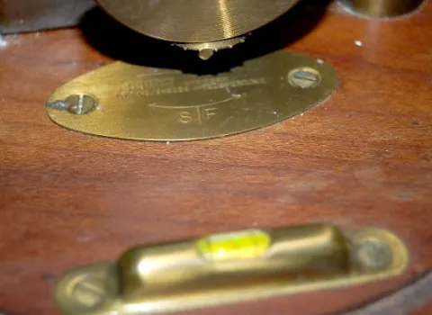 marked silverized dial with seconds bit; tagged on base and battery post; has a level. Not tested for running condition. 3 1/8" dial, 9 3/8" T; 11" T ...