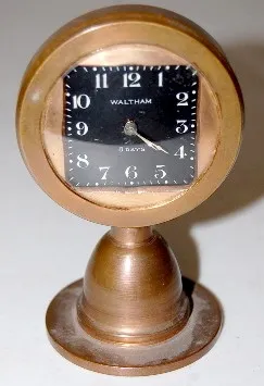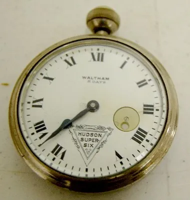 1.) Waltham 8 day; stem wind; Hudson super six; not working. (porcelain dial is cracked.) 2.) Waltham 8 day; stem wind; black dial; brass case; pull w...