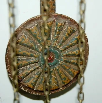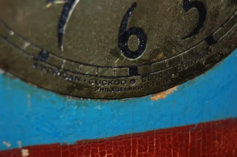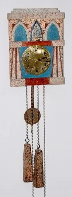 Metal dial, has pendulum, matching weights. Not tested for running condition....